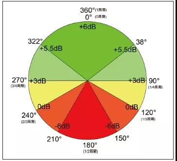 从表2可以看出,在阵列后向除中心频率外的其他频率呈离散相位关系,相位之间同样也会产生抵消;从表1可以看出,阵列前向整个超低音阵列可用频带内所有频率的相位差为0°,因此前方能量是叠加的。这样前后的声压级差就形成了超低音阵列的近似心形指向性。