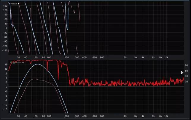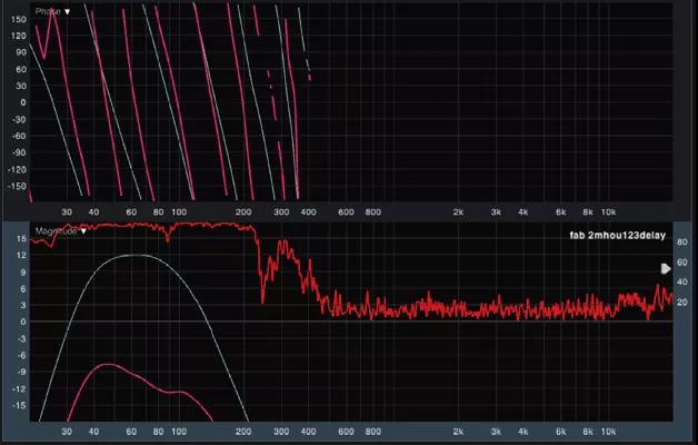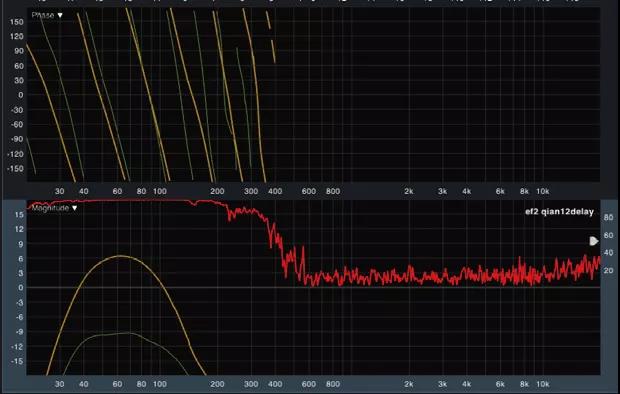 第三步:同样的测试位置,只打开第2只扬声器,并加入2 ms延时,与第二步中抓取的相位对齐,并设置反相。