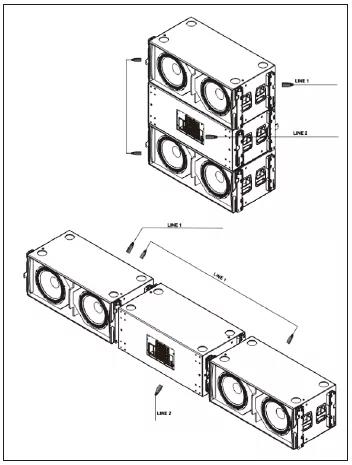 Front/Back阵列是本文所列举的3种阵列中同样扬声器数量占用空间最小的阵列,扬声器之间不需要距离,可以连接在一起,并且可以与全频扬声器一起吊挂安装;排列方式可以垂直也可以水平,如图26所示,节省空间。